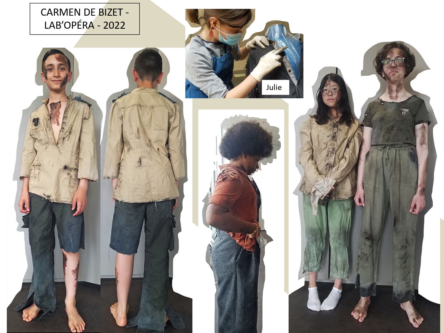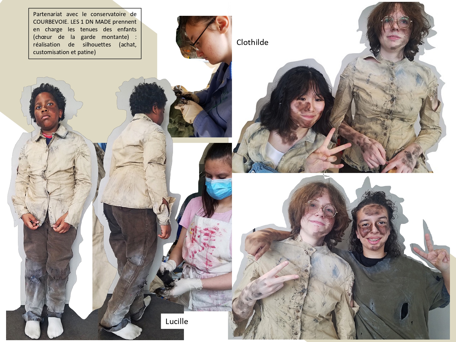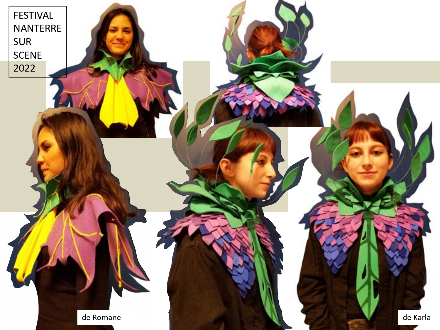 Des cols-cravates pour le Festival Nanterre sur Scène en lien avec la Licence théâtre de l’UFR de Nanterre ; les costumes patinés de la garde montante dans Carmen de George Bizet, pour le Lab Opéra de Courbevoie.