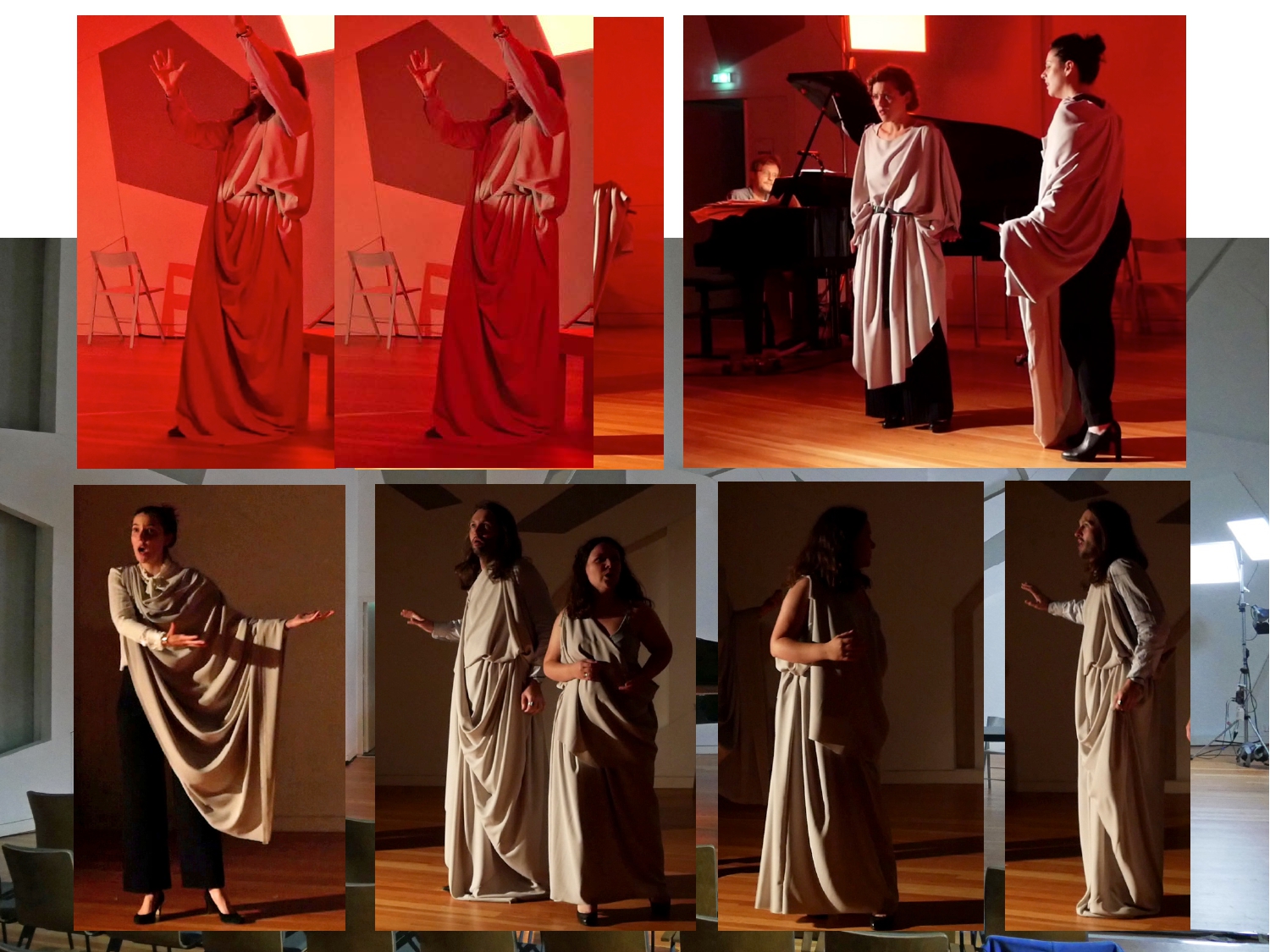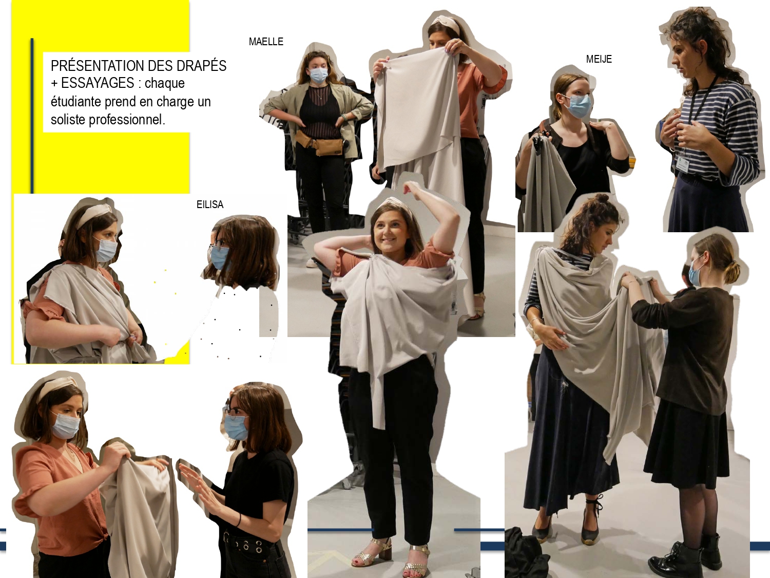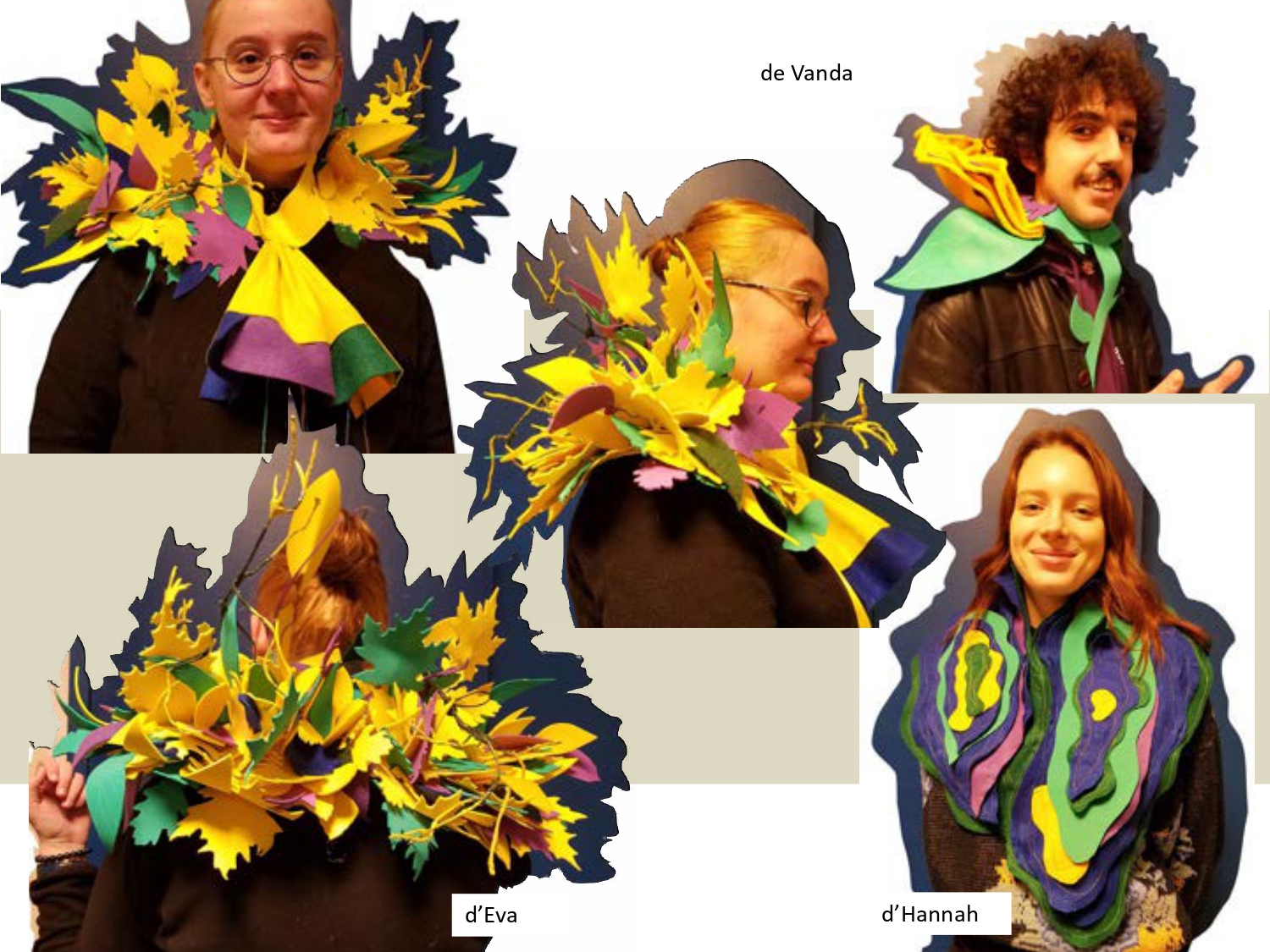 Des cols-cravates pour le Festival Nanterre sur Scène en lien avec la Licence théâtre de l’UFR de Nanterre ; les costumes patinés de la garde montante dans Carmen de George Bizet, pour le Lab Opéra de Courbevoie.