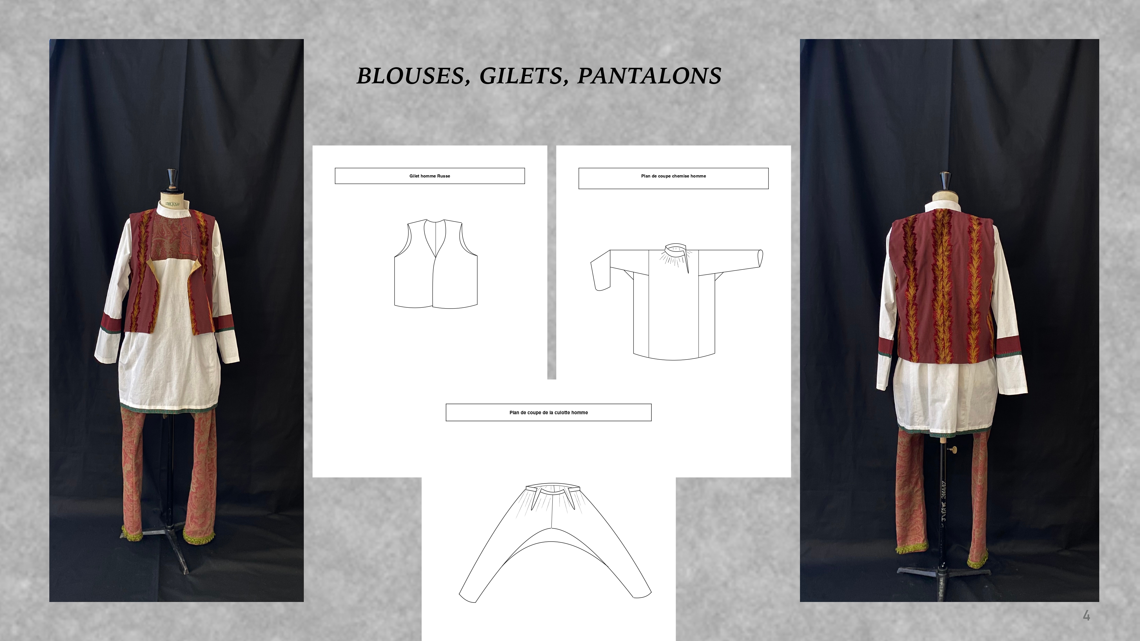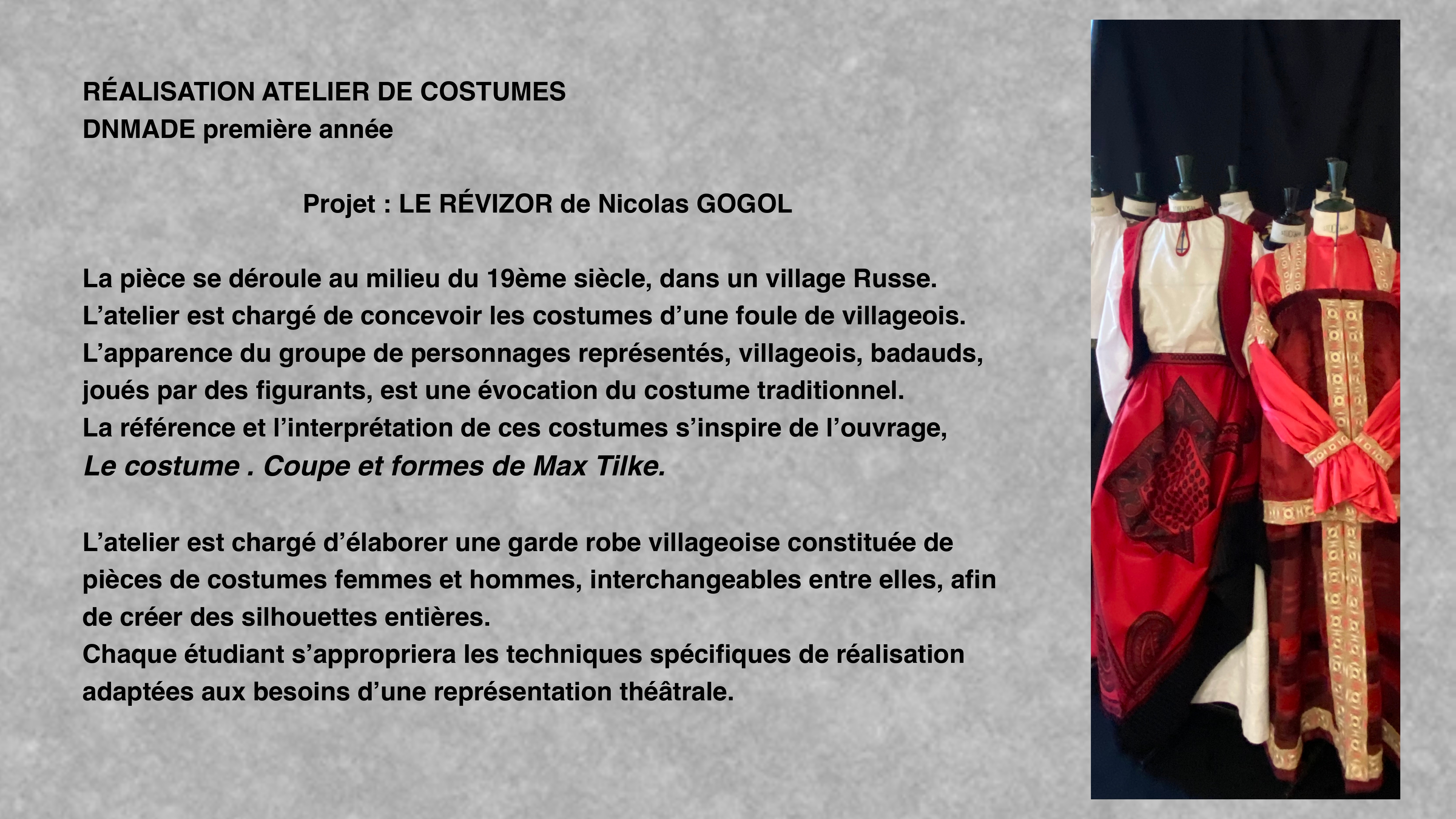 Des costumes pour le Révisor de Nicolas Gogol (fictif) ; des pourpoints graphiques ; des manches aux inspirations russes ; des vestes customisées et peintes ; des tissages.
